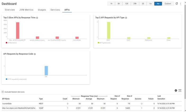Size of Response | Average size of the API response in bytes within the selected time. | |