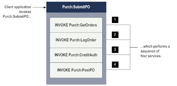 Any service can be invoked within a flow (including other flow services). For instance, a flow might invoke a service that you create, any of the built-in services provided with the Integration Server, and/or services from a webMethods add-on product such as the webMethods Adapter for JDBC.