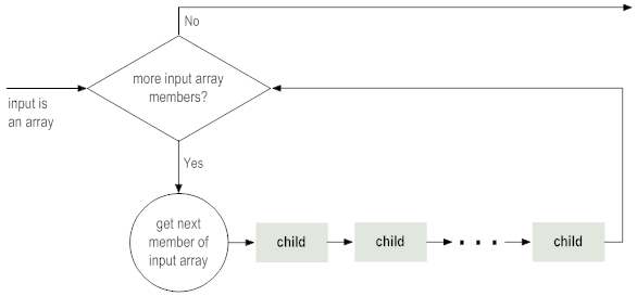 The LOOP step takes as input an array variable that is in the pipeline. It loops over the members of an input array, executing its child steps each time through the loop. For example, if you have a service that takes a string as input and a string list in the pipeline, use the LOOP step to invoke the service one time for each string in the string list.
