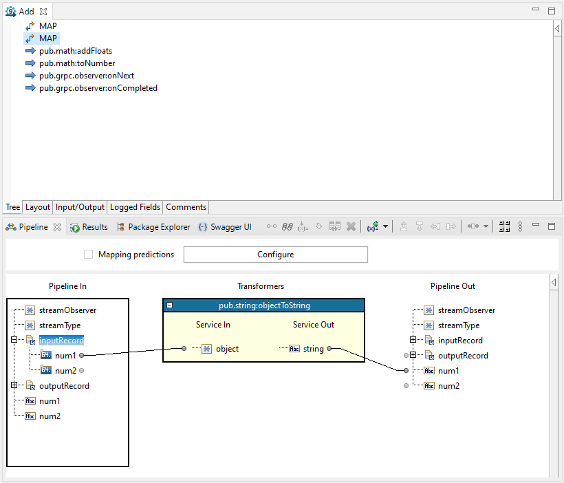 The MAP step that is the first step in the gRPC method flow service can be removed. Alternatively, you can add some or all of your implementation logic in the MAP step.