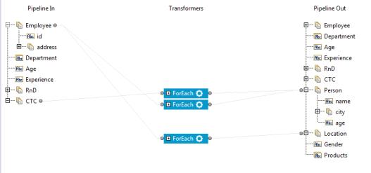 Employee | Location | This is a valid ForEach mapping. Single input array (Employee) to multiple output array (Location and Person). |