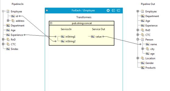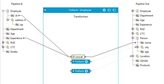 Employee/address | Person/city | This is an invalid ForEach mapping. Employee and Person are already part of current ForEach mapping. To establish this nested ForEach mapping, go to the Pipeline view of the ForEach mapping. |