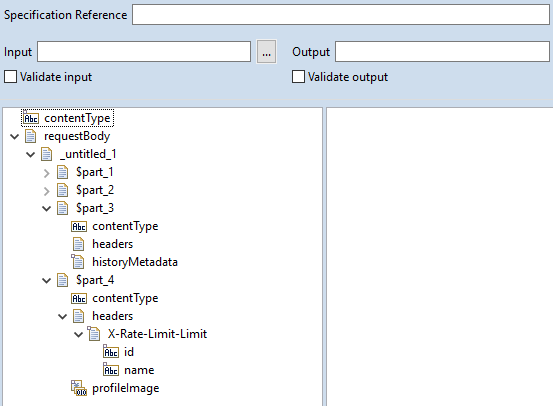 For multipart media type, Designer displays the following document structure.