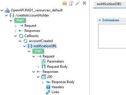 Callbacks. Each callback service defines the link to the service for which Designer sends the notifications along with the supported Tags, Security schemes, Extensions, and External document details of the specified service.