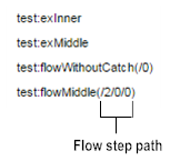 For flow services, the Service Stack column also shows an indexed path that identifies the step within a service at which the exception occurred. The path takes the form /n/n/n..., where n represents a sequential index of flow steps and / indicates a level of nesting: