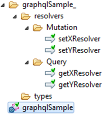 If you import the above schema in Integration Server with name graphqlSample, then Integration Server creates the resolver services for Query operation under graphqlSample_/resolvers/Query folder, and the resolver services for Mutation operation under graphqlSample_/resolvers/Mutation folder.