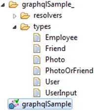 If you import the above schema in Integration Server with name graphqlSample then Integration Server generates the document types, User, Employee, Photo, Friend, PhotoOrFriend, and UserInput inside types folder.