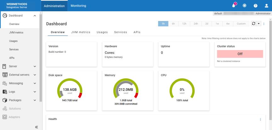 Integration Server Administrator provides access to all administrative tasks through a redesigned tab-based interface. The new interface is also the default, starting with version 10.11. When you start