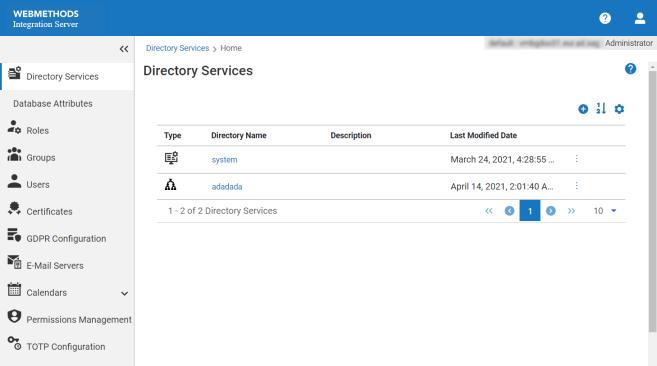 Common Directory Services : You can access the Common Directory Services (CDS) from the left-side navigation in the Administration tab. CDS provides a unified mechanism to connect to different user directories and manage users, groups, and roles, together with the users' access to webMethods resources. Using Common Directory Services via Integration Server Administrator does not require My webMethods Server. For more information, see the PDF publication "Managing Users with Common Directory Services".